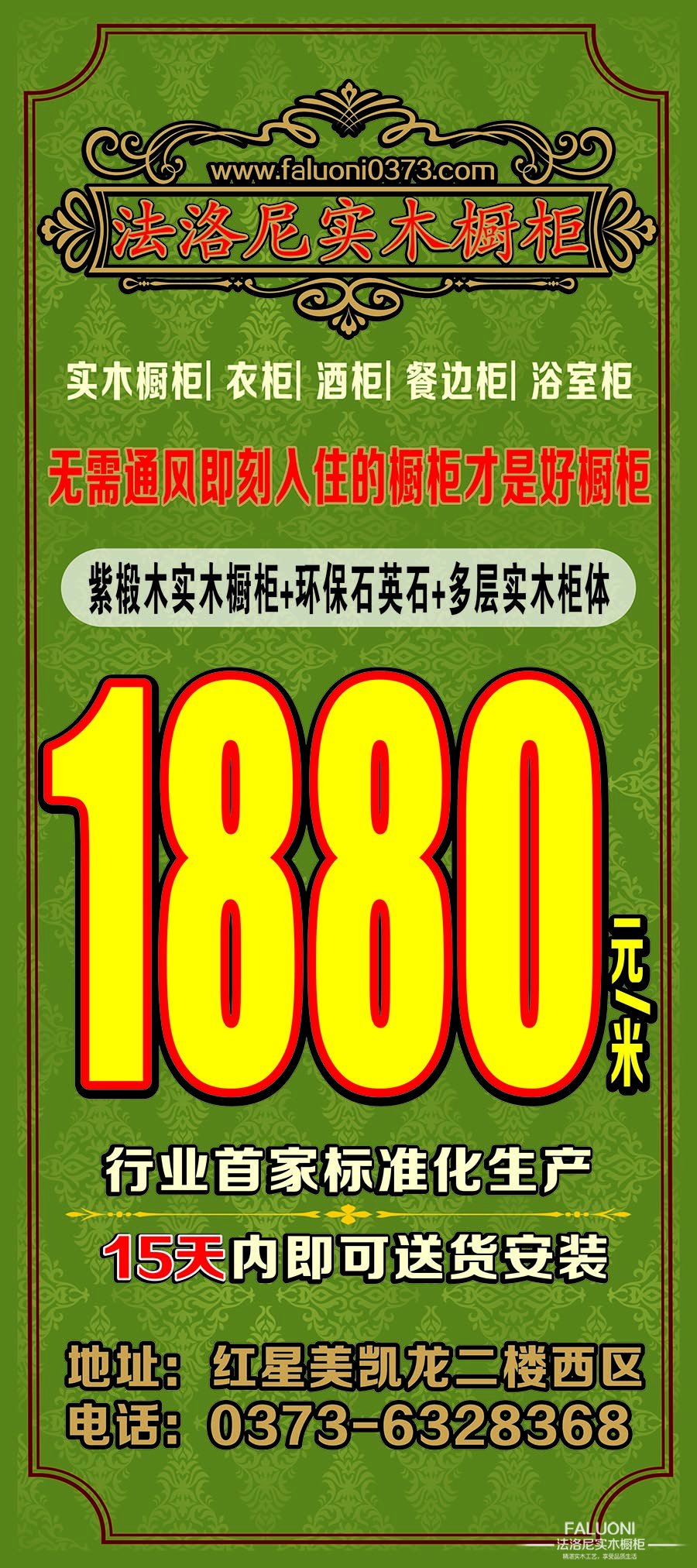 广告语:(行业首家标准化生产工艺,保证15天内即可安装)